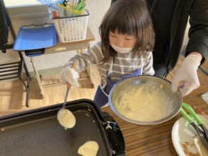 焼く作業、とても楽しそうですね😀返す工程もどんどん上手になっていました。