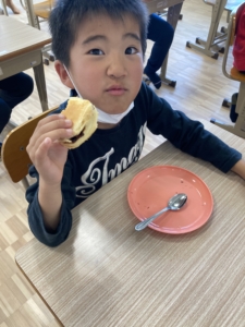 下校が早かった子どもたちで、「ミニどら焼き」を作りました!