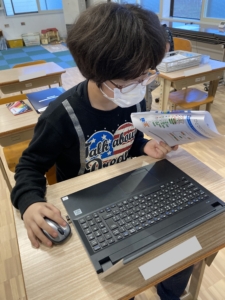 記事を書く作業に入りました!参考資料を見たり、パソコンで調べたりしながら、記事を書き進めていきます。