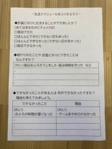 先週立てた生活スケジュールの振り返りをしました!