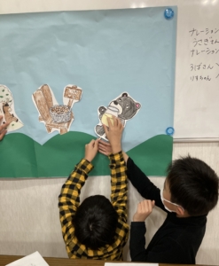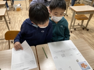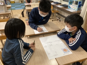 紙にまとめた道具を確認し、お友達と協力しながら道具をそろえることができていました!