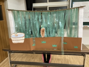 この日は、いよいよ小道具やセットを使いながら劇の練習をしました!