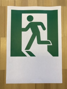 非常口のランプは、なぜ緑色なのでしょう?という職員からの問題があり、真剣に考える子どもたち。