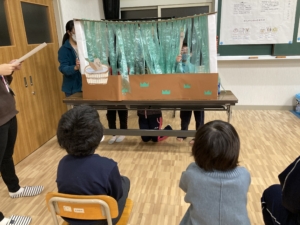 最後は、発表の練習も兼ねてお互いのペープサート劇を鑑賞しました。