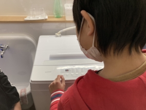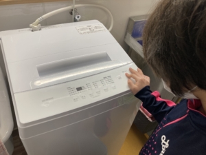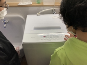 今回は「洗濯機の使い方」を学ぶグループと「洗濯物のたたみ方」を学ぶグループに分かれて取り組みました。
