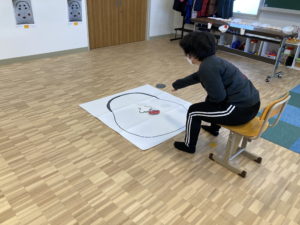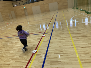 ルールは床にひいてある線の上だけを走ることができるおにごっこです!