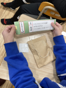 引いてすぐに中身を確認する子どもたち👀!!みんなそれぞれおみくじに書いてあることをじっくり読んでいました😊