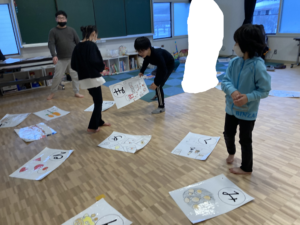 去年の活動で子どもたちがつくった巨大神経衰弱で遊びました!