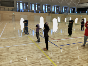体を動かす前にまずはみんなで準備運動です!