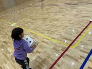 みんなの命中率がとてもよくすぐに5個のお手玉を入れることに成功🌟