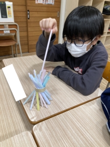 輪の中に入っているストローを、順番に引き抜いていくゲームです。