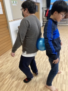 進むスピードがばらばらだとボールが落ちてしまうので、同じくらいのスピードで進むのがコツです💡