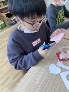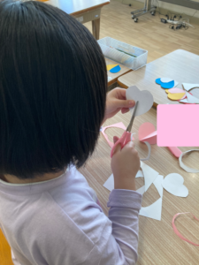ハート型は今回初めて作りましたが、お手本を見るとすぐに「わかった!」と作り始めていました。