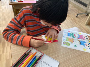 線の通りに切る、はみ出さないように貼るなど、丁寧さも意識しながら取り組んでいます✨