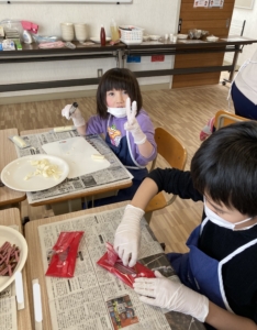 みんなで今まで準備してきたものを使っていよいよおやつ作りです😊