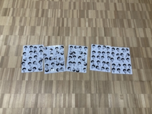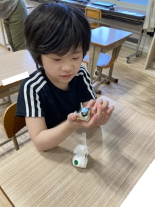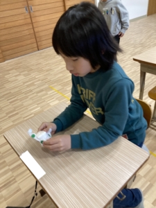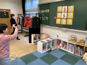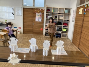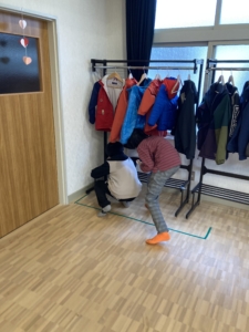 「ここに隠したら面白いかも!」とホワイトボードの磁石の下や高い場所、カーテンの後ろなど、上手に隠していました😀