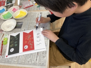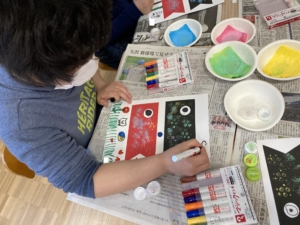 今回は“スタンピング”という方法で、こいのぼりの絵を描きました。