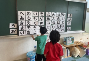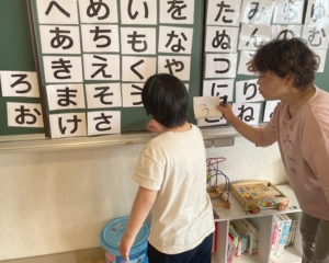 今回の文字遊びはビジョントレーニングも含めた活動を行いました。