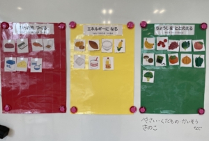 最初に職員から①体を作る食べ物②エネルギーになる食べ物③調子を整える食べ物の
