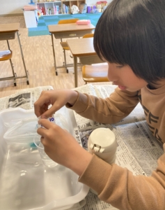 最後は実際に虹の色を塗って水に入れて虹をかけることができました🌈✨