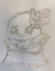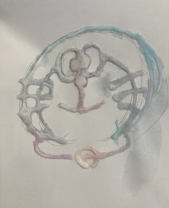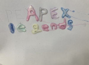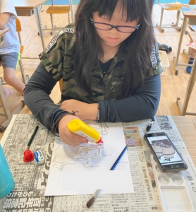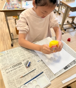 ②その文字や絵の線の上にボンドでなぞっていきます。