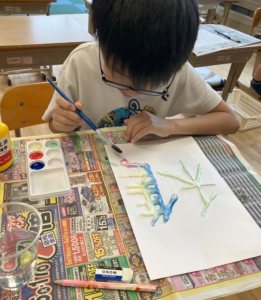 ①画用紙に鉛筆で描きたい文字や絵の下書きをします。