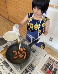 焼く作業は初めて!とのことでしたが、焦げないように丁寧に焼いてくれていました😆