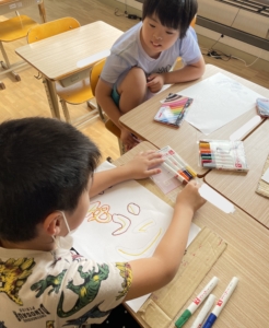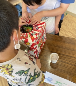 室内夏祭りを始めるにあたりみんなで食べ物や看板の準備をしました!😊