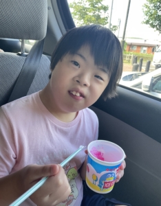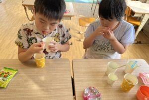 かき氷を食べるとにんまり笑顔の子どもたちでした😊