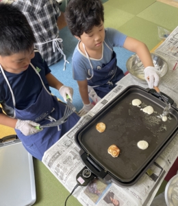 今回のパーティは「ミニミニパンケーキ作り」「チーズキャンディ作り」をしました!