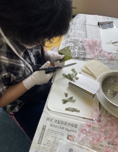 のりを細く切ったり、春巻きの皮が破れないように優しく包んだりと、細かい作業が多いグループでしたが