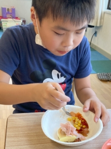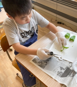具材を切るグループはお手本と同じ大きさに上手に切ってくれました😊