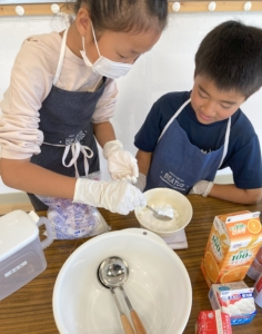 ペアのお友達同士で協力して分量を量ったりする姿が印象的でした😊✨