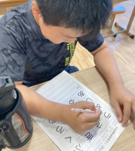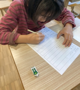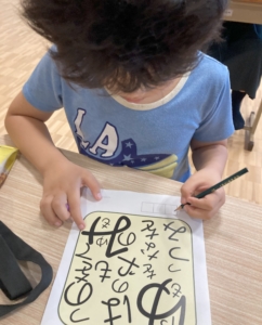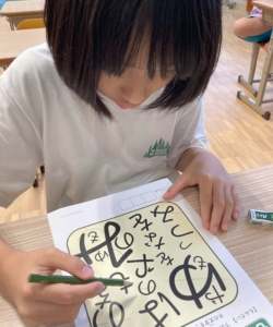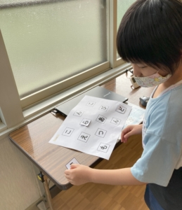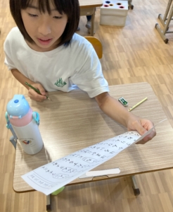 スタートの合図ですぐに同じ文字には斜線を引き、見つけ出しやすいように工夫をするお友達がいました☆