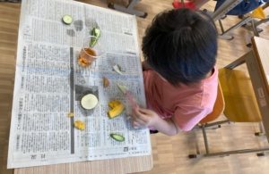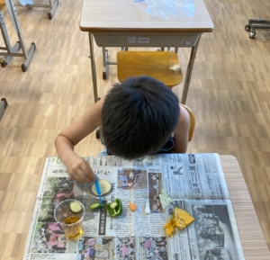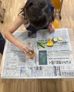 どんな野菜にでんぷんが含まれているのか、うがい薬を垂らして実験です!