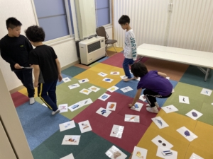 次にカードの絵柄を記憶して、別室にあるカードの中から正しいカードを選ぶという活動を行いました。