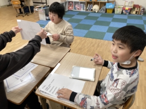 答えのない問題でしたが、自分で考えた感想を発表してくれました。