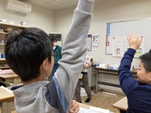 聞くとき、発表のときの声の大きさ、当てられてから答える等の約束を事前に確認しました。