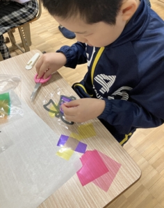 ①透明な色折り紙を好きな大きさに切ります。