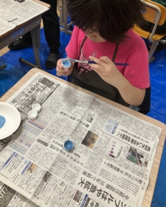 キャップの内側を塗料で塗っていきます🖌