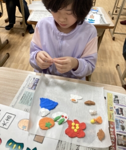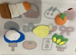 今回は紙粘土でお正月にちなんだみかん🍊やだるま🎍などの形を作りました!