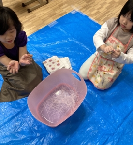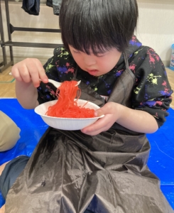今回の感触遊びは”春雨”を使った感触遊びをしました!!😊