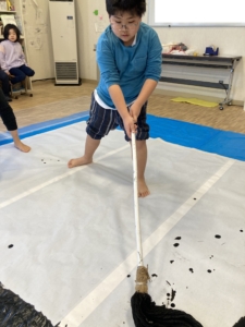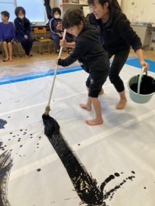 大きい筆に大興奮の子どもたち😆