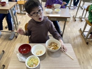 昼食時には「おいしいよー!」「