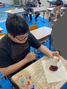 ①アクリル絵の具と洗濯のりを混ぜる(4~5色くらい作る)