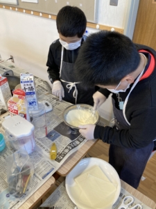 クレープの生地を焼くグループは、みんなとても上手で、まん丸できれいな生地をたくさん焼いてくれました✨