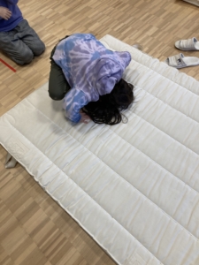 (例えば開脚前転なら、開脚で座った状態から、体の勢いと腕の力を使いながら立ち上がる等の練習です💡)