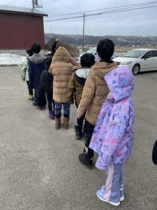 たまみずきでの避難訓練は初めてのお友達もいましたが、全員で避難することができました。