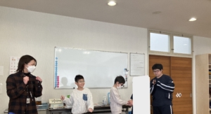 最後のコンクールは地震が起きたときの正しい行動について振り返りをしました。