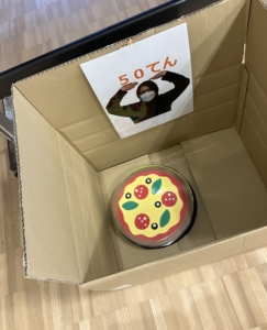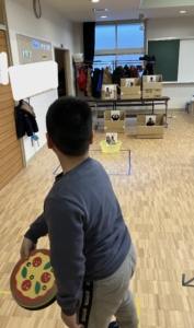 ピザになったフリスビーを職員のお家まで届けるゲームです🍕